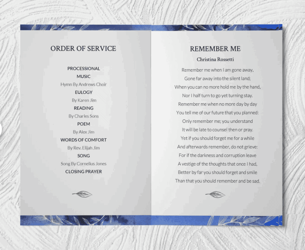 This printable is more serious but helpful. These are editable templates that families can use to make professional-looking programs for funerals or memorial services.
